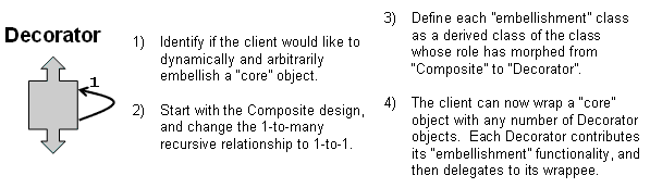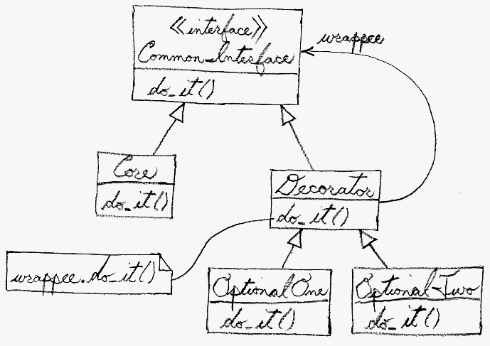 Also note that the core object's identity has now been "hidden" inside of a decorator object. Trying to access the core object directly is now a problem.