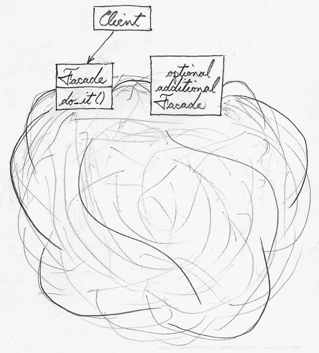 one class and the Facade may represent many classes?