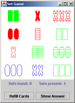 Problem Solving in JavaPrefaceIntroduction Mastermind game (command line UI) Fifteen Square puzzle (command line UI) Fifteen Square puzzle (GUI) Peg Game puzzle (command line UI) Peg Game puzzle (GUI) Peg Game puzzle move advisor Mastermind game (GUI) Set Game (GUI)