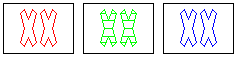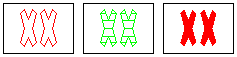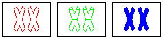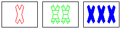 two, or three; color has: red, green, or blue; shape has: rectangle, X,