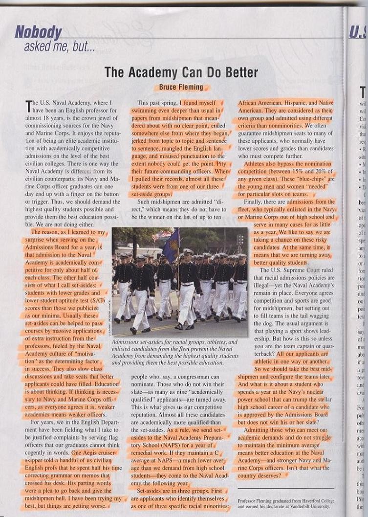 Op-ed by Bruce Fleming ... Naval Academy English professor on admission set-asides