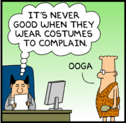 | Drama is an excellent vehicle for expressing a sentiment. The actual event can be simple or austere, if it is accompanied by drama. An amplifying or endearing effect is readily achieved. [Here, the hapless engineer is attempting to call attention to the stone knives and bear skins technology that needs addressing.] |