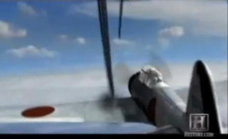 and miraculously sliced the Zero's wing. The Zero caught fire and came