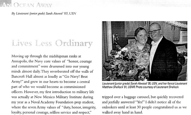 LTjg Atwood has been published multiple times in Shipmate doing just that (Lives Less Ordinary, SWOS-in-a-Box, Bygones). This excerpted piece was somewhat eclectic, but it presented a very thoughtful tapestry, and suggested that "military members are honored to give our selfless service to a thankful nation."